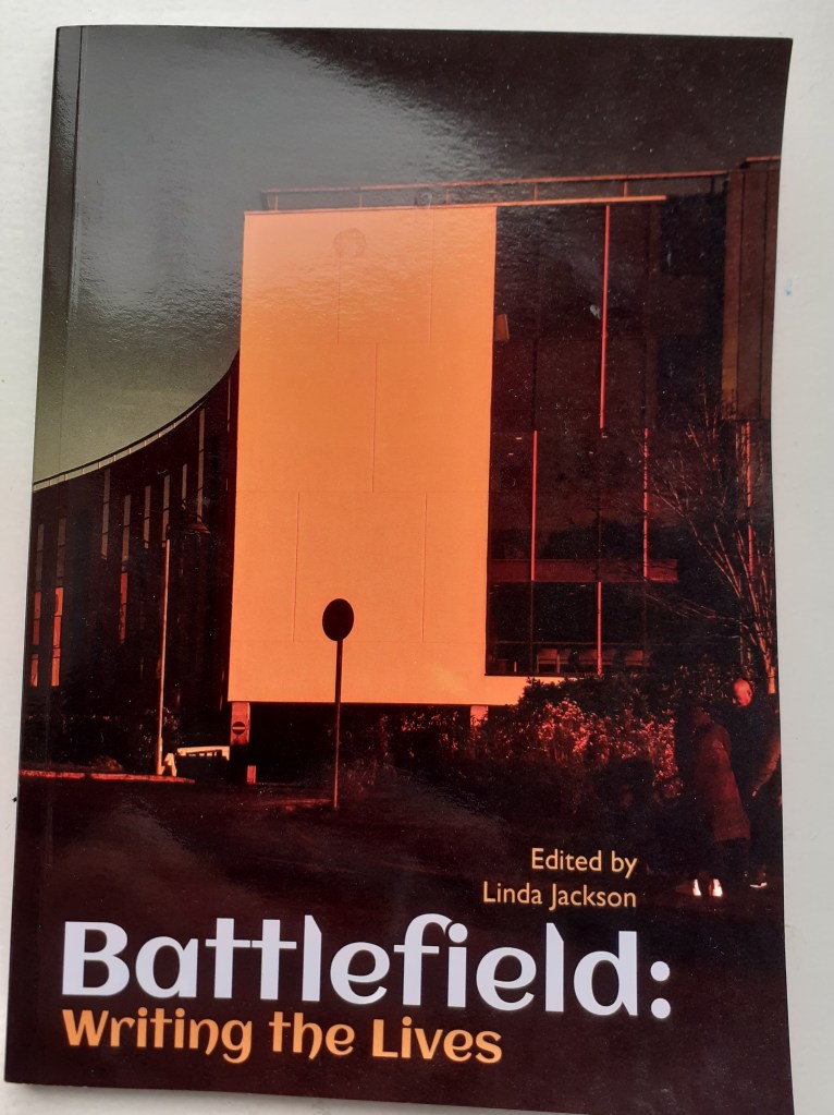 Fantastic to have a couple of my poems in a new anthology of writing from my local area, Battlefield. I love the cover image, transforming one end of the New Victoria hospital into something like a giant orange post-it note for the lives of all Battlefieldians to leave their mark on.