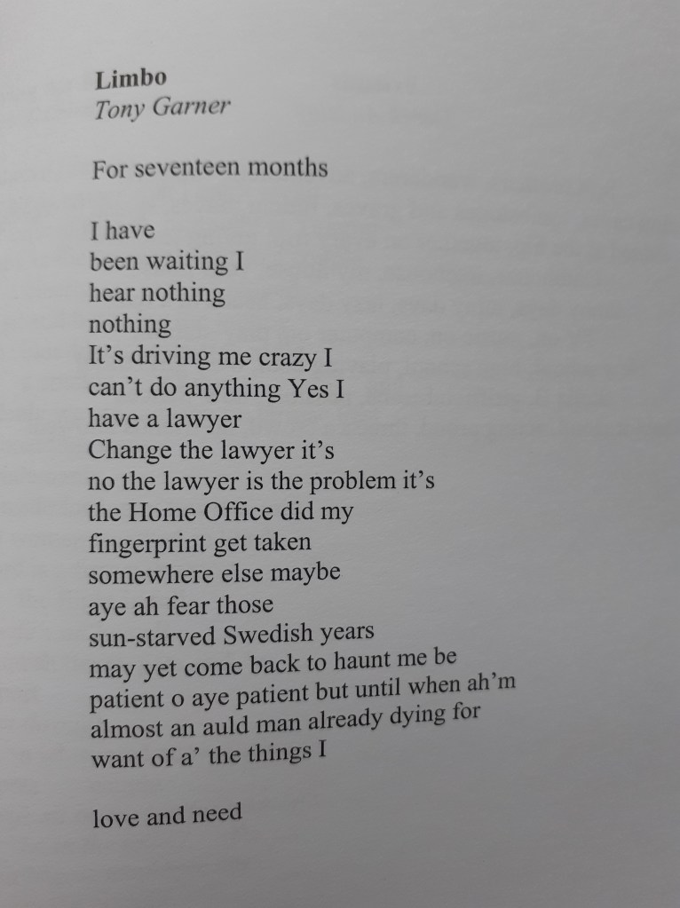 The force behind the book was Linda Jackson, who runs Seahorse Creative Arts and Publications. I got to know Linda last year when I joined one of her writing groups at Finn’s Place. She’s a fabulous teacher, natural raconteur, and a superb writer herself. Above all Linda puts an incredible amount of energy into nurturing other people’s writing. Since meeting her I’ve read poems live at a couple of Seahorse events, and we’ve worked together to set up free creative writing classes for refugees and asylum seekers. I do the recruiting from students I teach English as a Second Language (ESOL) in college; Linda runs the classes with the help of another poet, Donna Campbell.