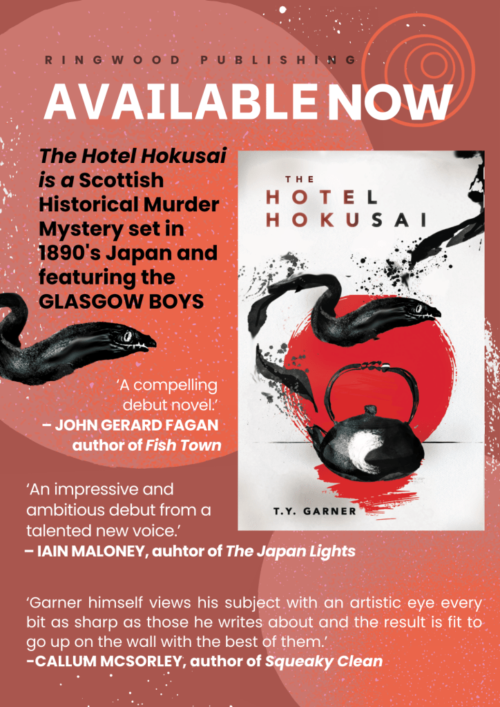 I am a Glasgow-based writer of fiction and occasionally poetry. My debut novel, The Hotel Hokusai, was published in February 2024 by Ringwood. It has received kind reviews in The Herald, The Glasgow Review of Books and The Bottle Imp, as well as from renowned Scottish authors Iain Maloney, Callum McSorley and John Gerard Fagan. Sadly, since July 2025 Ringwood no longer exists in the same form, so new copies are no longer easily available in bookshops. There are second hand copies out there, including online, or new ones can be bought on Amazon through me or, preferably, directly (just email me using the address at the foot of this page).